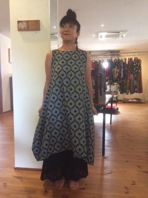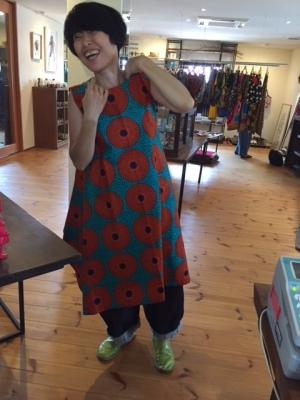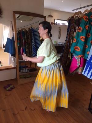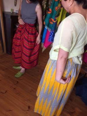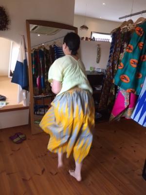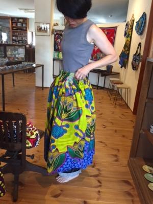 今回、スカート、ワンピース、パンツなどに加えて、バッグやアフリカの雑貨も勢ぞろい。