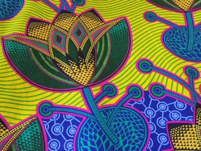 燦々と強い太陽の下に映えるカラフルで強烈なインパクトのあるアフリカンプリント。