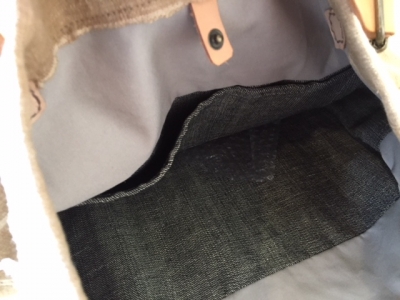 その布をうまく異素材のものと組み合わせて唯一無二のバッグが完成。