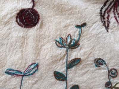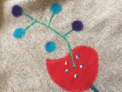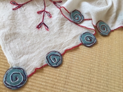 今日は、ストールにニードルパンチやミシンステッチで描かれたモチーフをいろいろご紹介いたします。