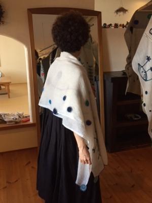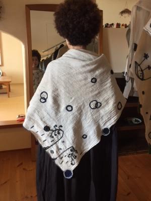今回は、秋の始まりに上着代わりになるようなウールの大判ストールもつくりました。