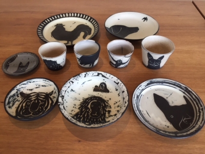 千尋さんの作品には、ツバメ、ネコ、トリ、ロバ、犬、ブタ、フクロウ、ウサギ、・・・など、動物がモチーフになっています。