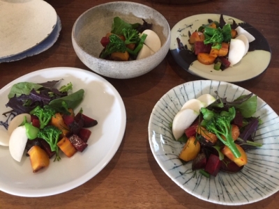 暖冬で種類が多いので、このほかにも数種類サラダに使われました。