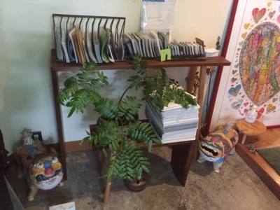 ギャラテンの玄関で、ショップカードを置いて使っています。