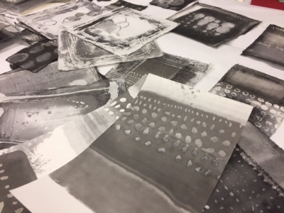 24日に終了した岐阜の篠田桃紅美術空間での個展から戻ってきた作品がたくさん。
