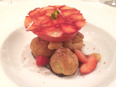 『ピスタチオのプロフィトロール 苺のソルベ』