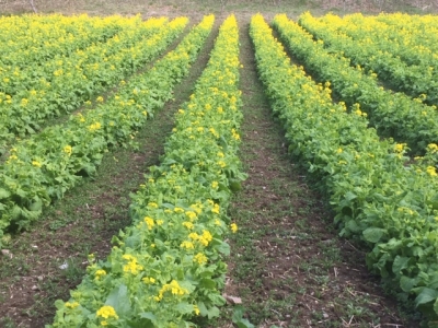 道中、菜の花畑に癒される。
