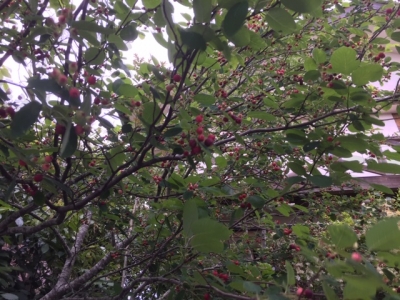 ジューンベリーの赤い実がたわわに成りました。