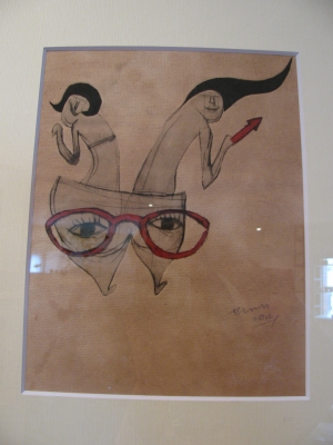 アクリルガッシュとクレヨンでドローイングを加えた作品。