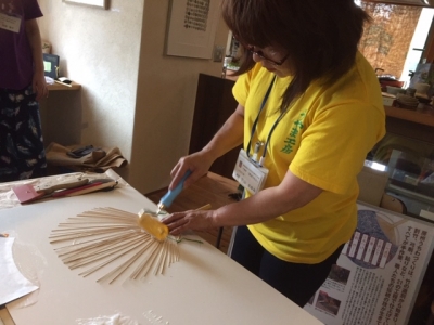 みなさん、ワイワイと楽しそうにうちわづくり。