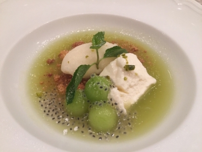 『フロマージュブランのムース メロンのスープ仕立て