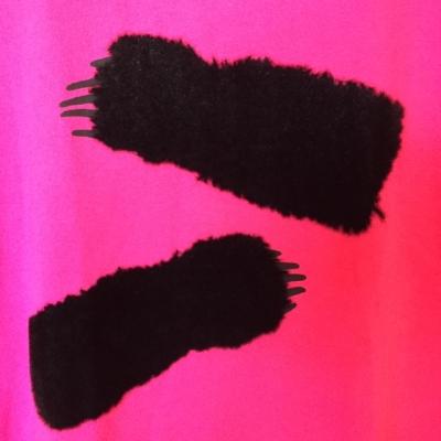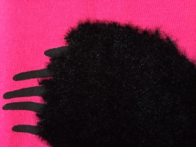 地色のショッキングピンクと、イカついコロコロモコモコの腕。