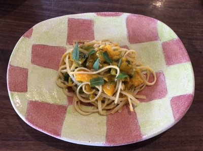 パスタ:バターナッツとかぼちゃのつる、レモンバーベナのリングイネ