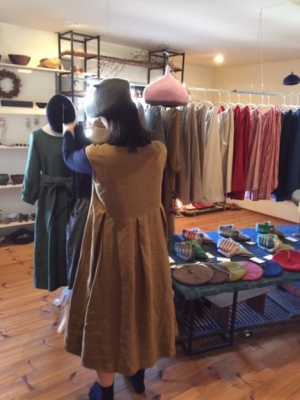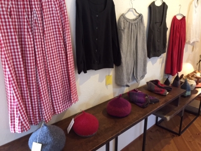 リハルさん主宰の”アトリエ・イド”の、ニット、かご、リネンなどのワークショップから派生したウェアや雑貨が続々と。