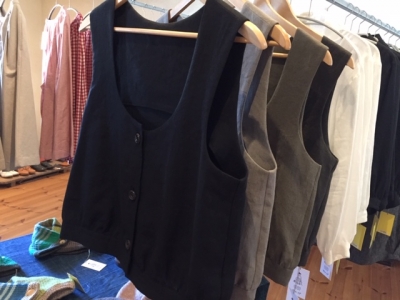 従来のたっぷりキュロットやパンツに加え、ストンとそのままかぶって着るゆったりローブ、ベストもお目見え!