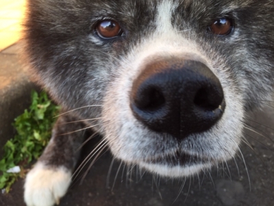 この時間だと、近所のコンビニにいつもいる秋田犬のクマちゃん。