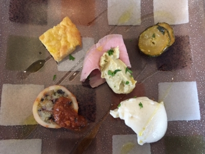 『ズッキーニのスカペーチェ』(素揚げしたズッキーニをビネガー・オイル・ミントでマリネ)