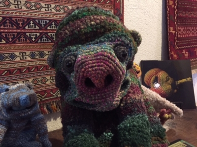 かぎ針で一目一目編まれた動物たちは手を入れてパペットに。
