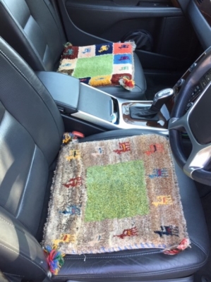 また車のシートにもギャッベの座布団を敷いています。