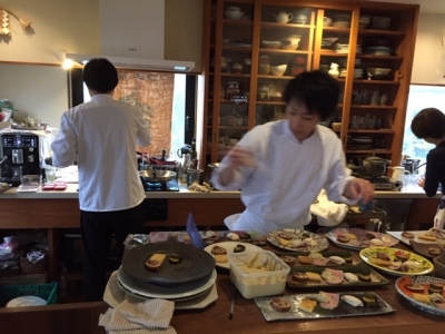 テンのキッチンにて小島シェフが美味しいお料理を作ってくださいます。