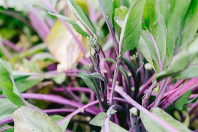 紅菜苔やセロリ、ちぢみほうれんそうなどのサラダに向いた葉野菜たちに、