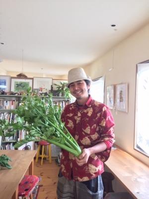 栗田貴士さん自ら、自作の野菜を一番おいしく調理します。