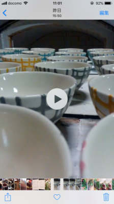 一方、作品は、ビシっとキマった造形に墨色の貫入と鮮やかな色の対比は緊張感さえ感じられます。