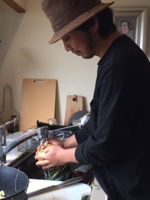 栗田貴士さん自ら、自作の野菜を一番おいしく調理します。