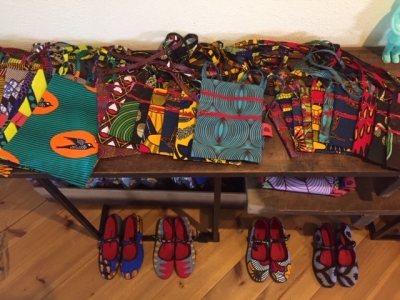 アフリカンプリントのスカート、パンツ、ワンピース、バッグなど、