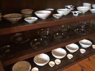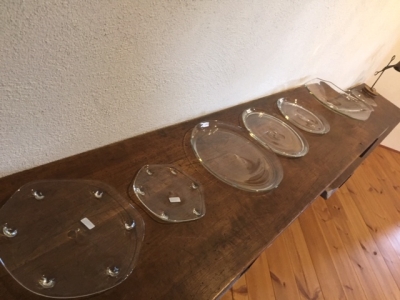 グラス、皿、ボウル、花器などたくさん勢ぞろいします。
