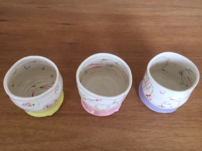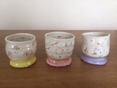 ヴィヴィッドな色、パステルな色、濃紺、・・・が白い滑らかな磁肌に載ると、