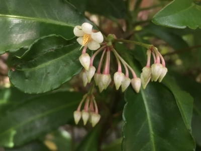 マンリョウの花がひとつ咲きました。