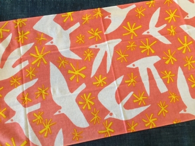 型を布に置き、染料を塗り付けてはがす、ステンシルのような技法です。