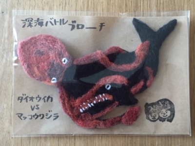5年前に、彼のウケを狙って沖縄の魚のフエルトブローチを作ったのがきっかけ。