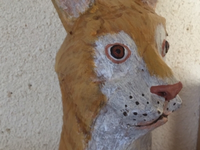 一見、木彫のような段ボール彫刻。