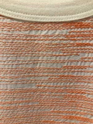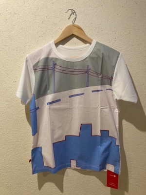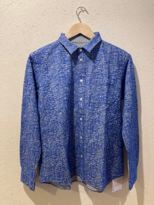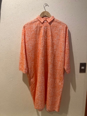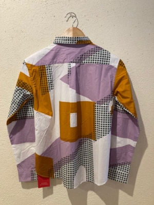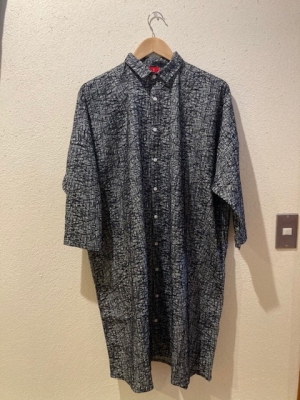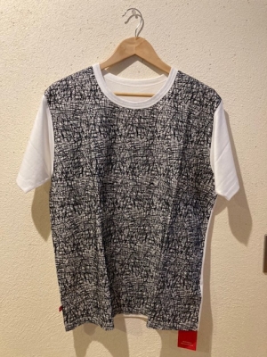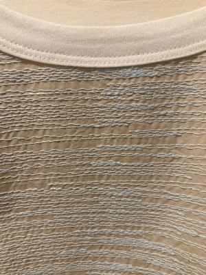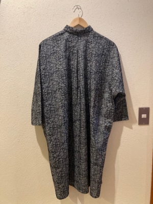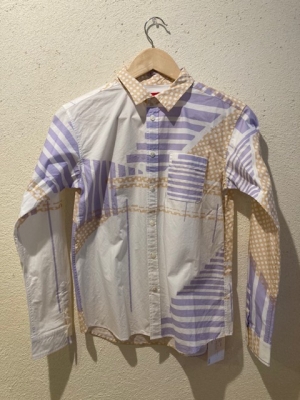 前身頃がプリント布帛、後ろ身頃がカットソー素材