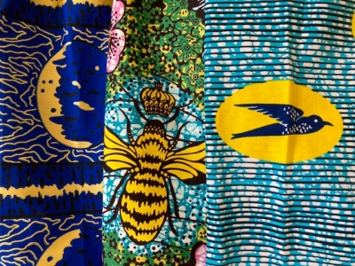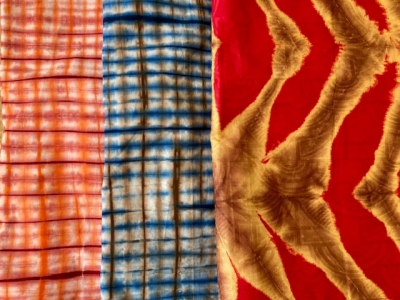 バザンという生地は、地模様のある白地を染め、