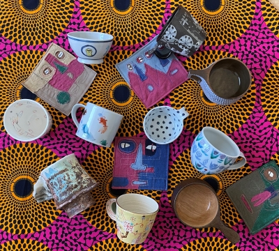 ドローイングもよいし、ミシンステッチのコースターもよし。