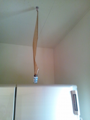 この蝿捕り紙を吊るして