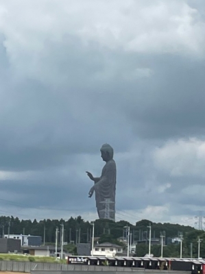 道中、牛久大仏を横目に走る。