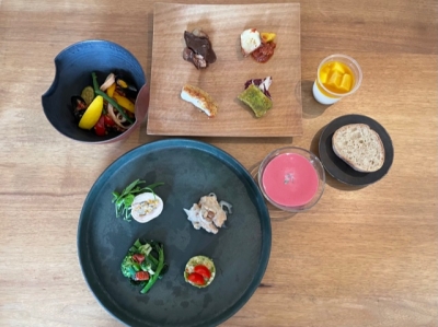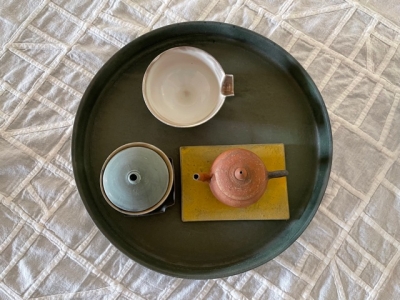 せっかくなので、今展の大村さんの器に盛りつけてみました(はなうのM・山崎さんが)。