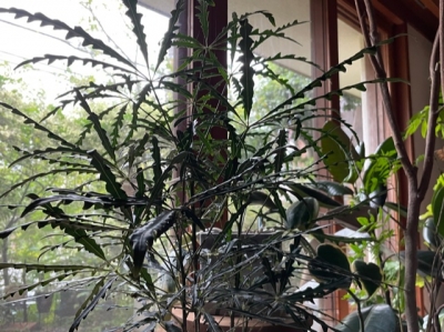 いつも家の日当たりの悪いところに吊っているコウモリラン。