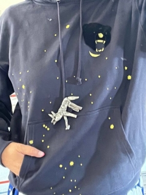 フードのコードにブローチを付けてみました♪