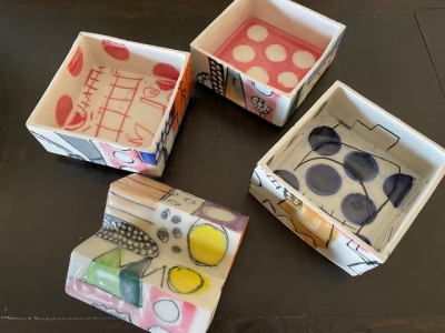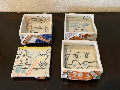 陶磁、絵、版画、布、鉄、・・・など、いろんな素材で創作されています。