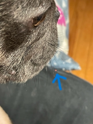 オトのヒゲの先に血の玉がキラリ。