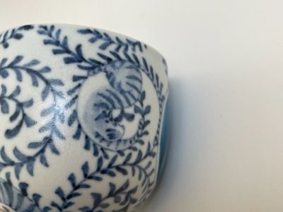 そんな絵が描かれた磁土の真っ白い肌は、ユリさんの絵を引き立てています。