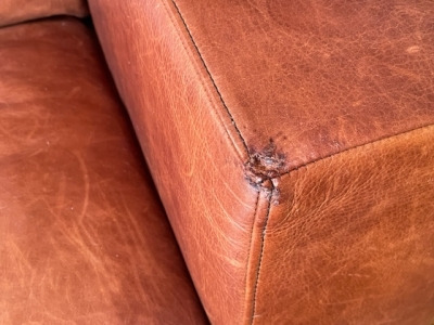 ソファの角もヤラれる。