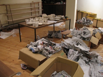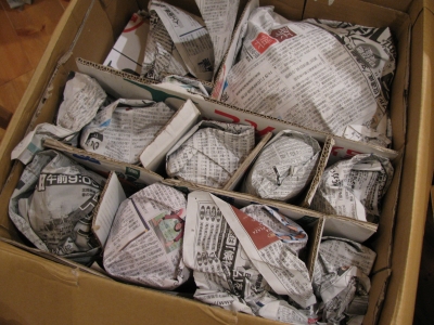 まずはパッキンや散乱した新聞紙を片づけてから