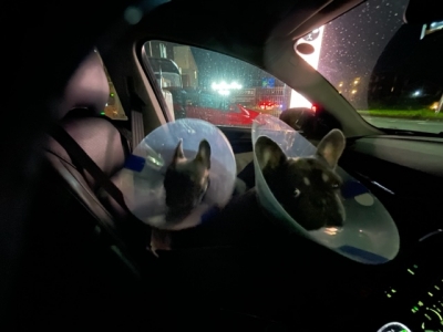 午前10時半、アニオト、去勢手術の抜糸に行く。