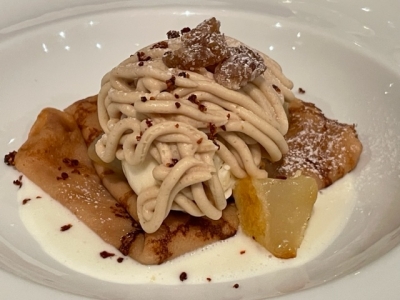 『洋梨とリコッタチーズのジェラートと洋梨のロースト』